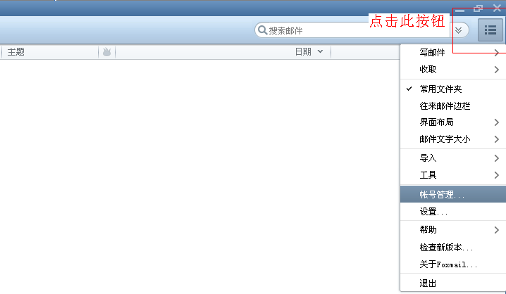 1、點擊Foxmail7.1頁面右上角菜單按鈕,在下拉框中找到“賬戶管理”;