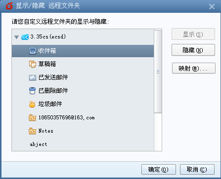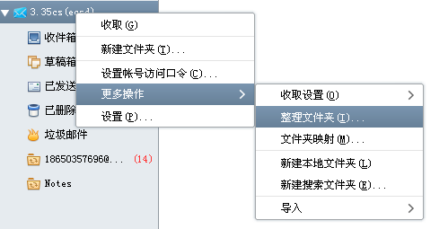 A:可以點擊郵箱賬戶的右鍵——》更多操作——》整理文件夾——》將對應(yīng)的遠(yuǎn)程文件夾“顯示”出來。