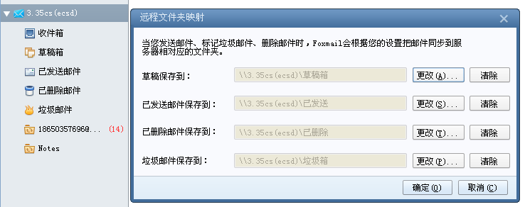A:可以點擊郵箱賬戶的右鍵——》更多操作——》文件夾映射,“更改” 已發(fā)送郵件保存目錄。